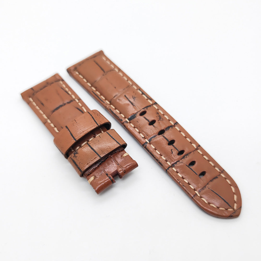 Bracelet en cuir de veau marron crocodile bambou pour montre PAM LUNMINOR RADIOMIR avec goupilles de rechange 24 - 22 mm