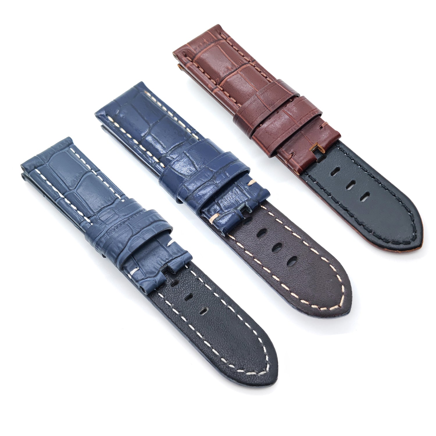 Bracelet en cuir de veau crocodile et bambou pour montre PAM LUNMINOR RADIOMIR (bracelet uniquement)